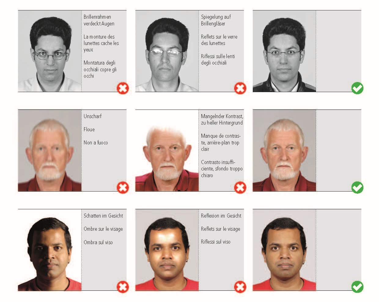 - Schärfe: das Gesicht sollte klar erkennbar sein, ohne Unschärfen oder Verzerrungen