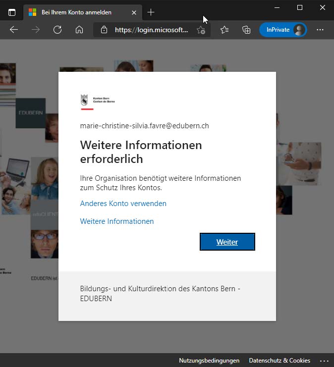 Melden Sie sich beim Edubern-Support (Soarhe.Jahany@bernedu.ch), dass Ihr Konto zurückgesetzt werden muss: