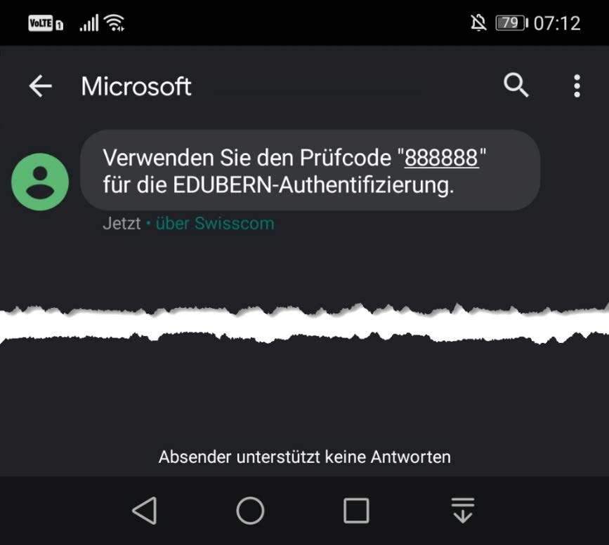 - Auf das Mobiltelefon mit der soeben angegebenen Mobiltelefonnummer wird eine SMS mit einem Prüfcode (zufällige Zahlenfolge) geschickt.
