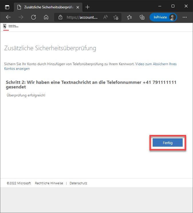 Es wird empfohlen, zusätzlich zur Authentifizierung per SMS auch die Microsoft Authenticator App einzurichten.