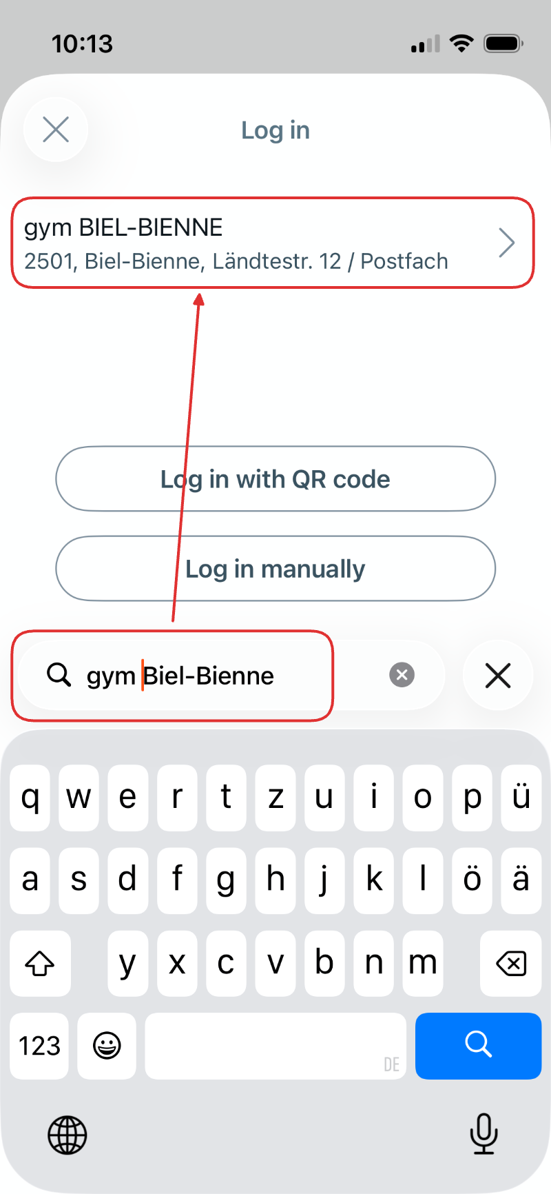 4. Suchen Sie nach der Schule gym BIEL-BIENNE und wählen Sie sie aus.