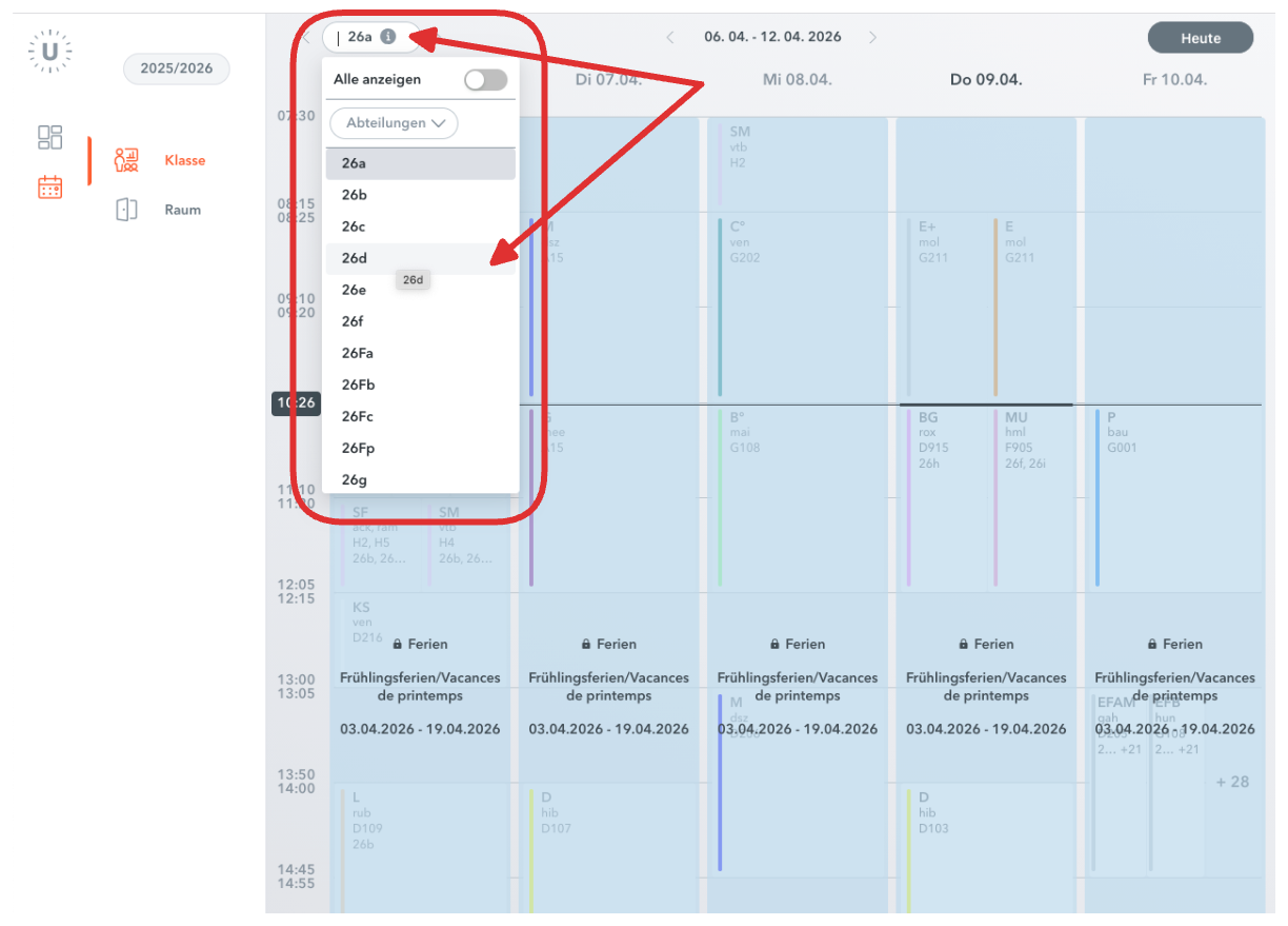 6. Gehen Sie zum Stundenplan Ihrer Klasse.