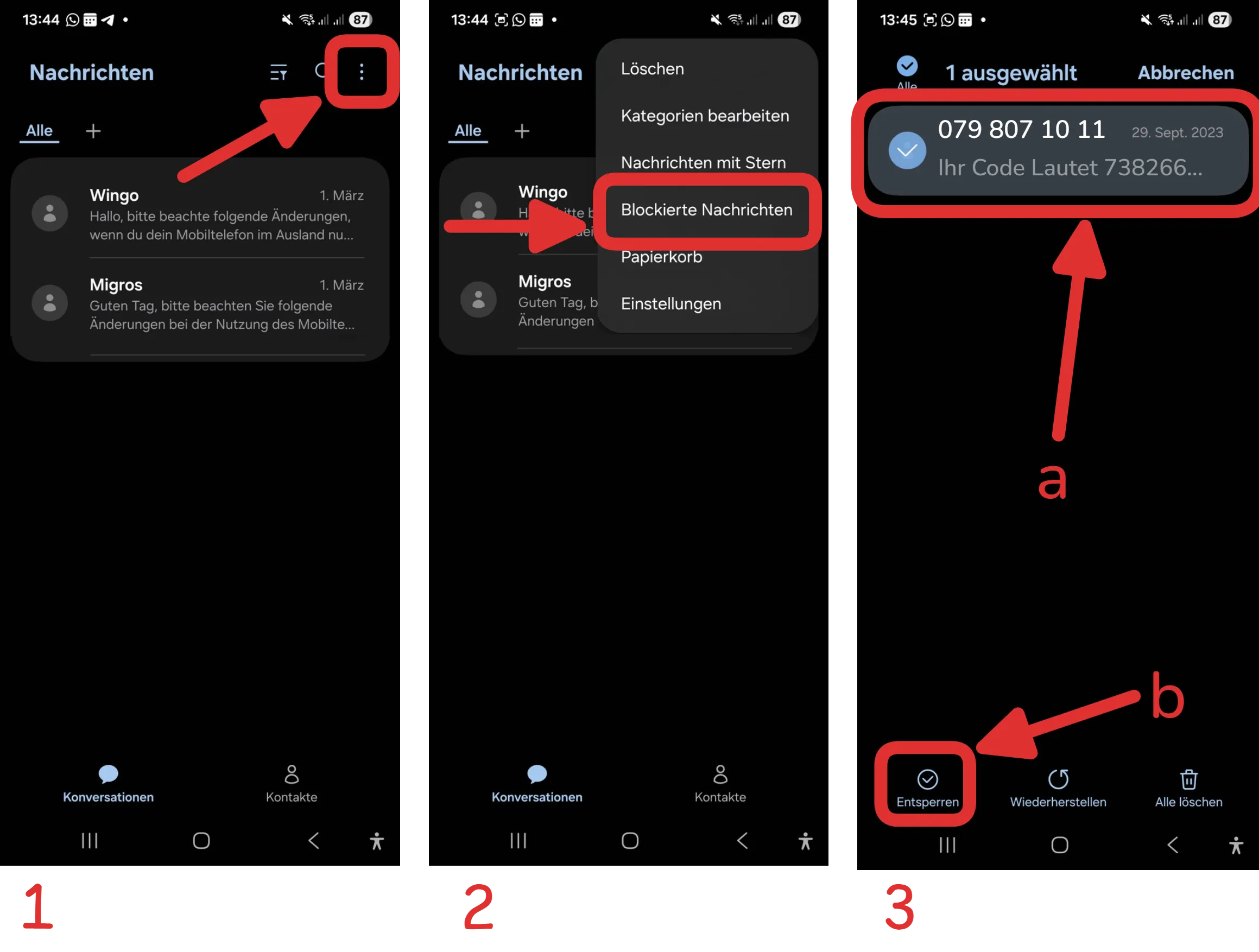 Die Bestätigungs-SMS wird von der Nummer 079 807 10 11 gesendet. Wahlweise können Sie: