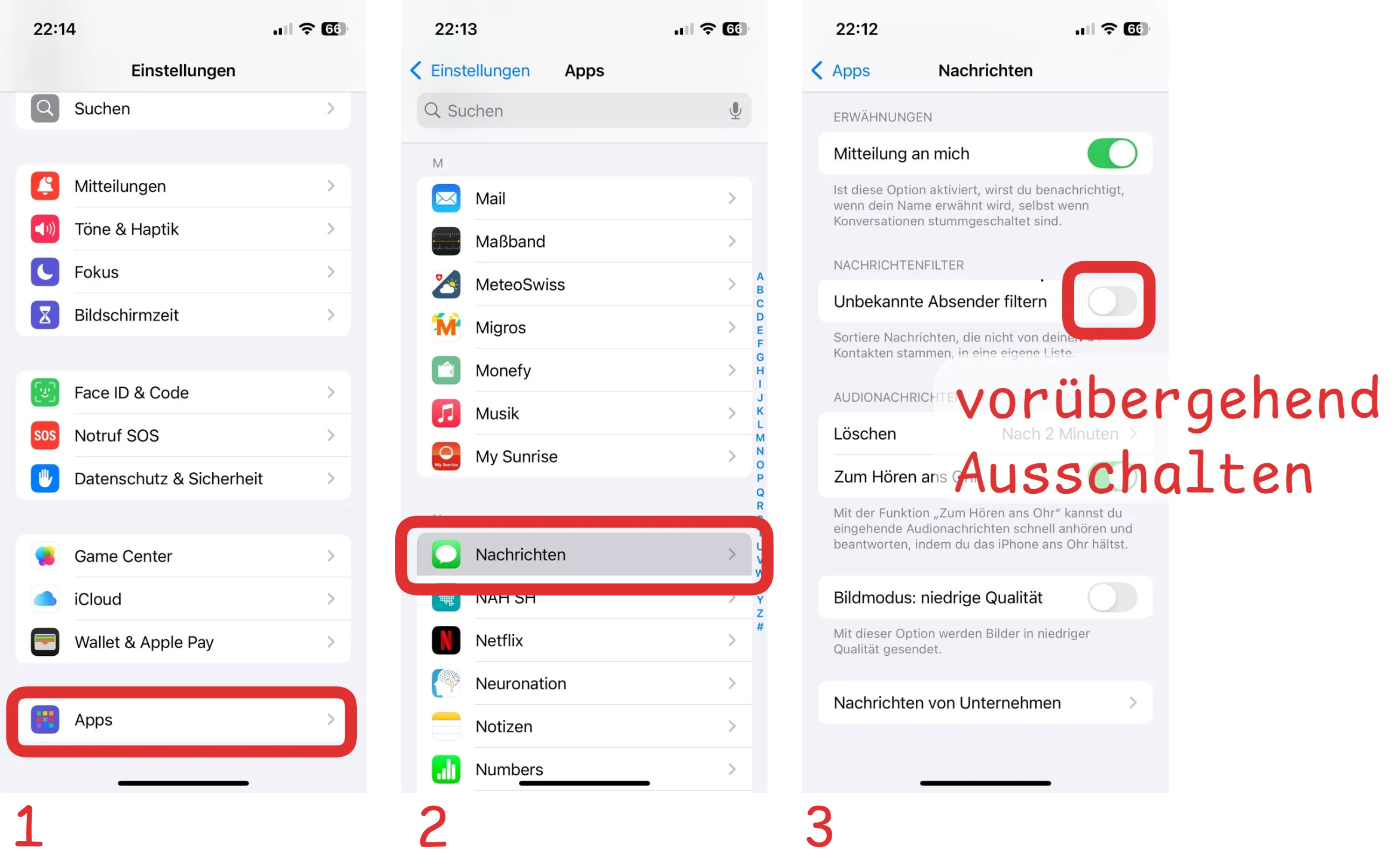 - den SMS-Filter vorübergehend deaktivieren, um die SMS zu empfangen, oder