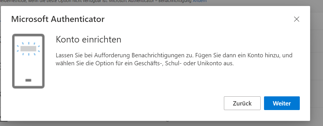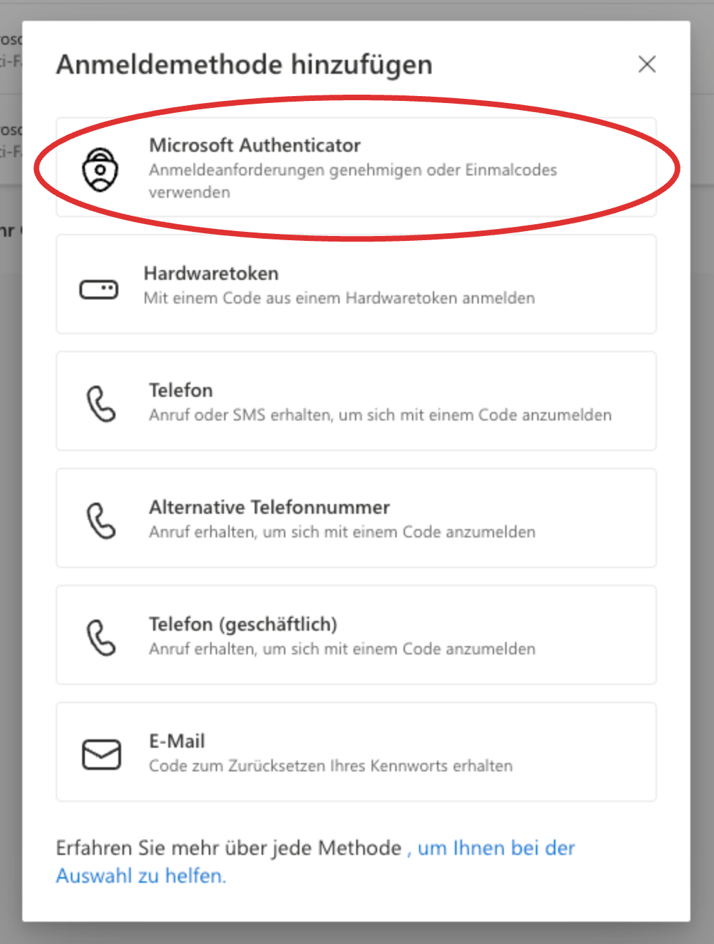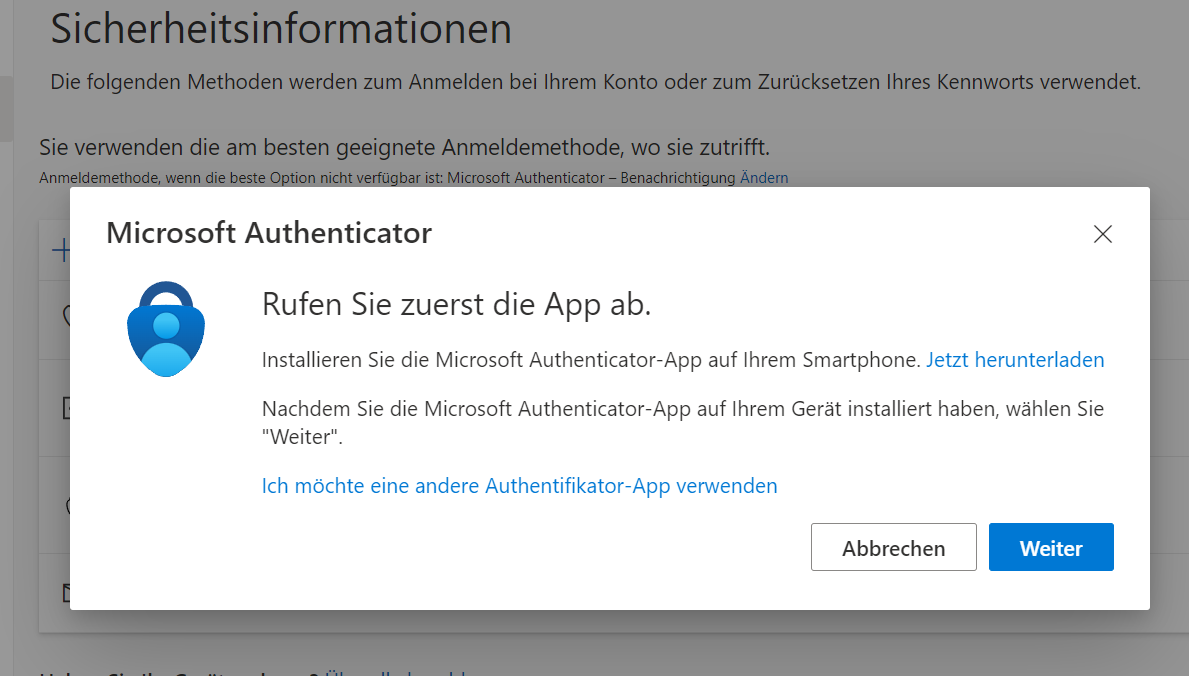 - Wählen Sie die Methode Microsoft Authenticator.
