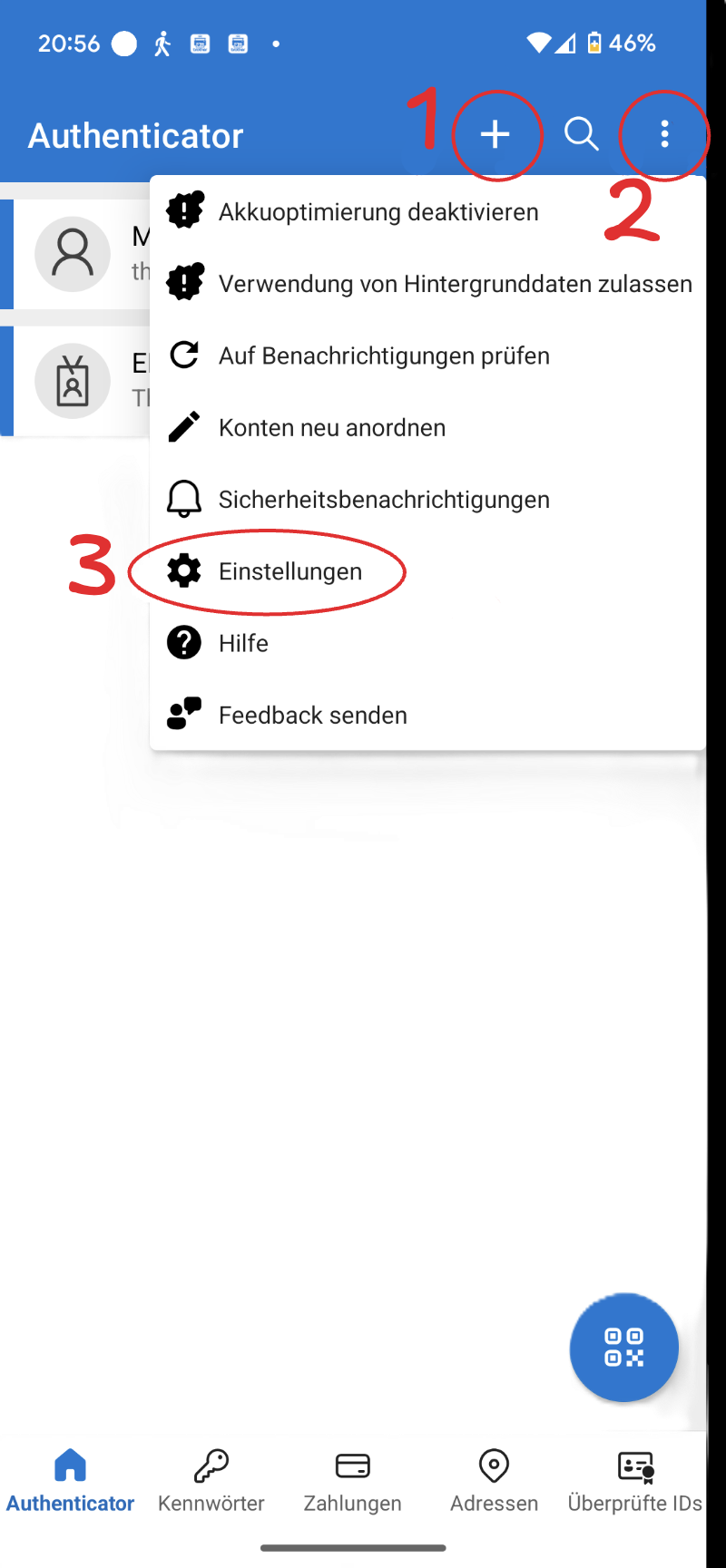 - Öffnen Sie die Authenticator-App auf Ihrem Smartphone.
